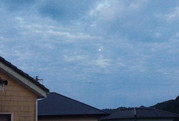 右: アップしました。真ん中辺にポチッと見えるのは昨日の満月です。雲の向うでも驚く程太陽の光を跳ね返していました。画像では白い丸にしか映りませんが、黄金色でした。