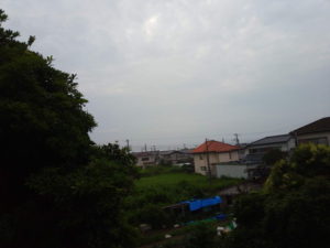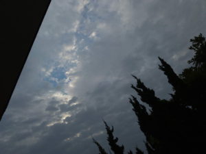 写真は5時過ぎのもやった空ですが、真上には雲の切れ目から僅かですが、青い空が覗いています。