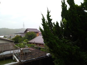 7時前、音を立てて雨が降って来ましたが、物干しに居る福が入って来ないから、大丈夫な程度なのでしょう。