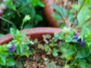左: あら、ピンボケだ蕾が上がったパンジ―です。