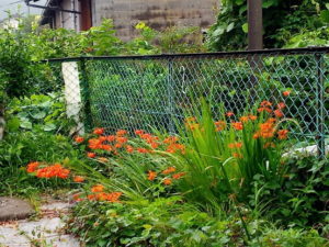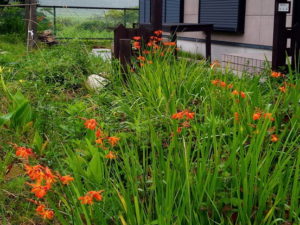 西隣さんのヒオウギアヤメが倒れて来ましたね。受粉したのかな。こうして植物は少し離れた処に子孫を残して行き、やがて群生が出来ます。