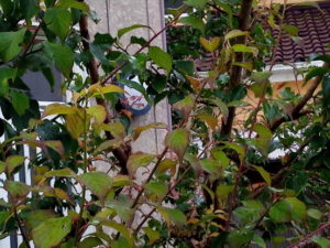 少し早いとは思ったけれど、先月ピンチングした菊は11月に咲きます。ピンチングした処から枝を複数出して、大きく広がっています。後二回位ピンチングしないと秋までに大きくなり過ぎるかなぁ。