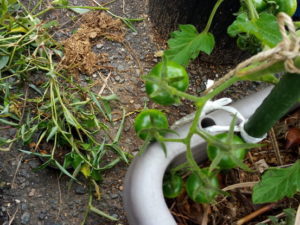 これは長くなるから、表に行って来ました。取り敢えず玄関前だけ点検です。トマトを支柱ヒモに絡めて来ました。キャンディドロップが7―8段、大玉が3―4段、トスカーナバイオレットも3―4段です。
