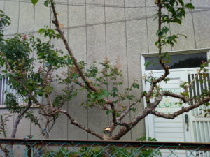 剪定後の実梅。モシャモシャなのは鹿児島紅の枝です。。