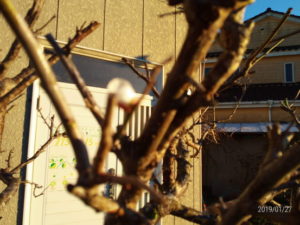 中: 2019年ですが、11月、ようやく全景を撮ったものがありました。剪定前なのか、垂直枝だらけです。