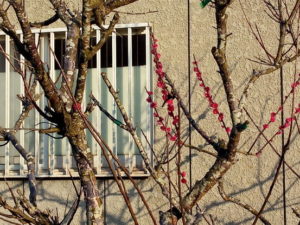 左: 2019年1月29日頃、花が咲いた部分を摂りました。実梅に関しては、この時期に全体を撮ったものはありません。