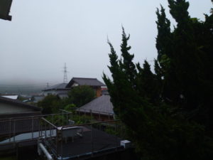 写真は4時41分撮影です。いつ雨が来ても可笑しくない程にもやっています。
