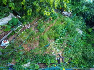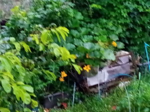右: 第二堆肥枠では南瓜の花が沢山咲きました。後で花をチェックします。