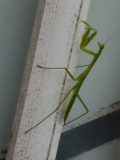 昨日はこのサイズのカマキリさんを物干しと玄関の二か所で見つけました。未だ細いから鳥に、蛙に気を付けるんだよ。猫だって手を出すでしょう。鉛筆サイズになるまでは敵が一杯だけど、畑や庭ではとても優秀なハンターです。