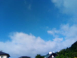 青空と薄い雲のせめぎ合いが空で繰り広げられていますが、此処数日カラリと出来なかった洗濯ものを物干しに出しました。物干しの網戸に居たカマキリさんは出て行ったみたいです。