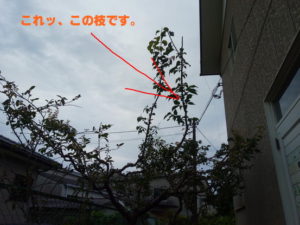 中: 本日、一寸倍率が違うけどね。ま、大体こんな感じね。枝先の角度が違いますよね。お・ど・ろ・き!実梅の重さが無いから、当たり前ではあるけれど、私の意識には無かった事実。