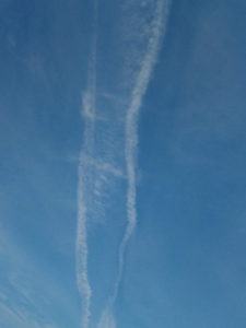 昨日の朝、綺麗に広がった青空にに伸びた二本の飛行機雲は館山航空隊から飛び立ったジェット機です。でも、飛行機雲が出来るという事はそろそろ湿度が高い空気が広がって来ていたのでしょうね。