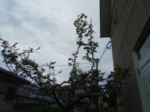 そうそう、梅の樹で思い出したけれど、今年実を沢山着けて呉れた枝が幾つかあるんですが、その内の一本は玄関ドアの直ぐ外で、たわわの実を着けた時は私の身長よりも低く下がって、先は南を指していたのですが、最近梅ボーイズさんの動画で枝先をすっきりさせた後は西南西を指しているんですよ。面白くないですか。南へ向いて居た枝を剪定下からじゃないの?…それもあるかも知れないけれど、枝先が西南西を指す事によって、少しだけだけど、枝の向きが通路を横切る、というよりは、通路に沿って来たんですよ。面白いと思いませんか。