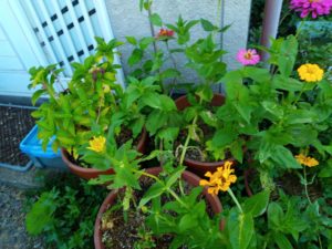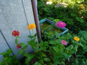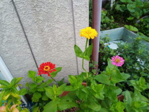 中&右: 日光種苗さんに戴いた百日草の種のおまけが花を咲かせました。