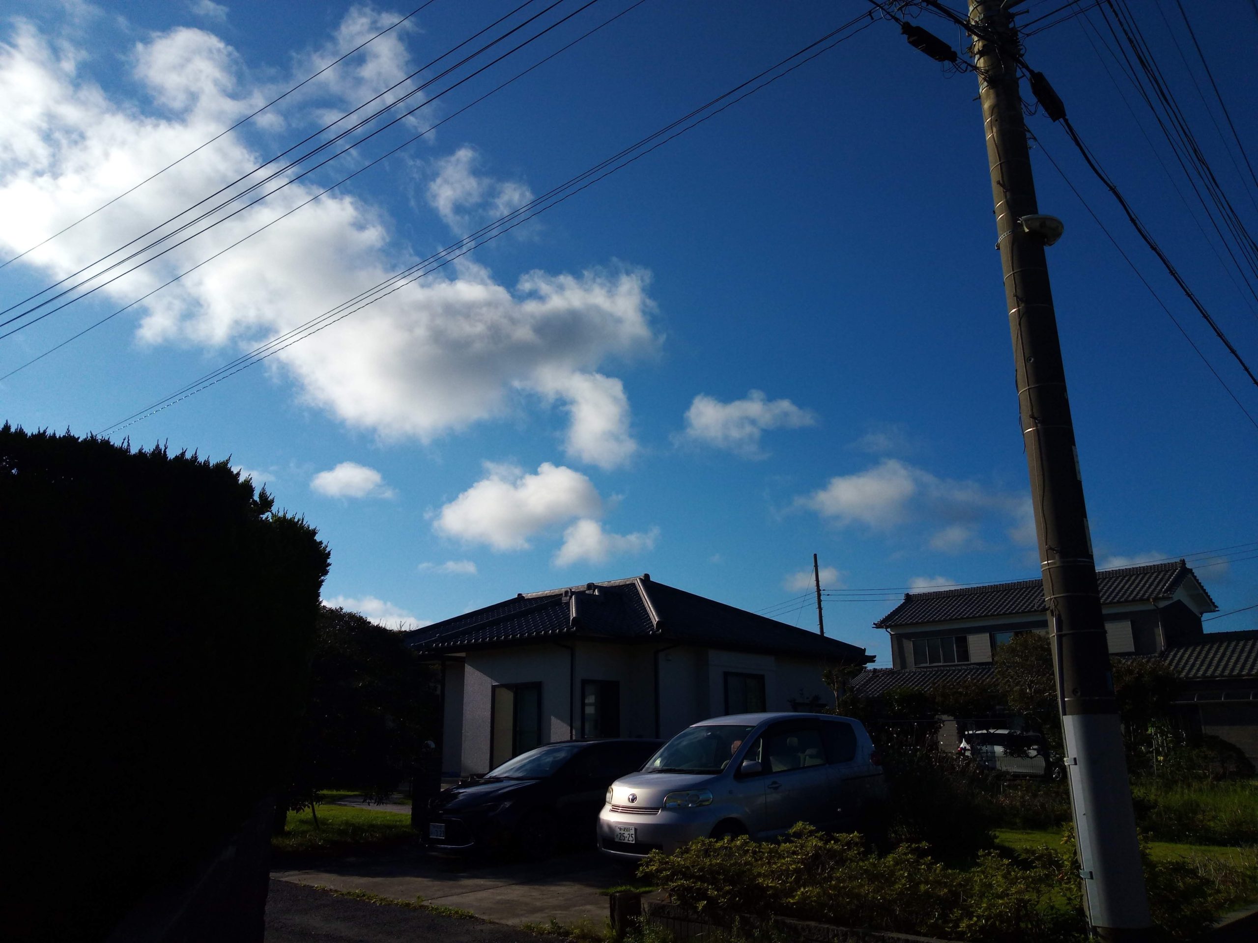 毎日日中になると青い空が広がるようになりました。午前中には靄が掛かっている事もありますが、大体晴れ上がります。そして、夜は夜露が居りて地上の草木や屋根をしっとり濡らします。田舎では当たり前の光景だけれど、これはコンクリートジャングルでは感じられないものですよ。