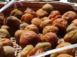 左: 崩れているのは完熟梅の証拠。皮がとっても柔らかい。