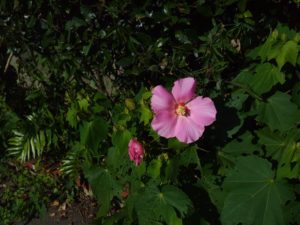 全く逆の色をした芙蓉の花にもきっと何かの役目があるのでしょうね。この暑さの中を咲く花には色が違っても、清熱解毒と言って身体に籠る熱を散らす作用があるようです。散淤止痛という効能もあり、こちらは血の汚れを取り、痛みを止めるという事だそうです。こんな情報がスッと手に入るネットは有難いですね。