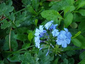 ブルンバーゴが咲きました。この季節に涼を齎す為に現れた、淡い水色の花です。