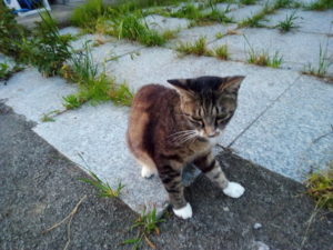 直ぐに福も帰って食事。その最中にお隣の物置の屋根を見るとトラ子が涼んでいる!『トラちゃん、ご飯!』、というとトラ子にしては珍しく飛んできた。『待ってたんだよ~!』