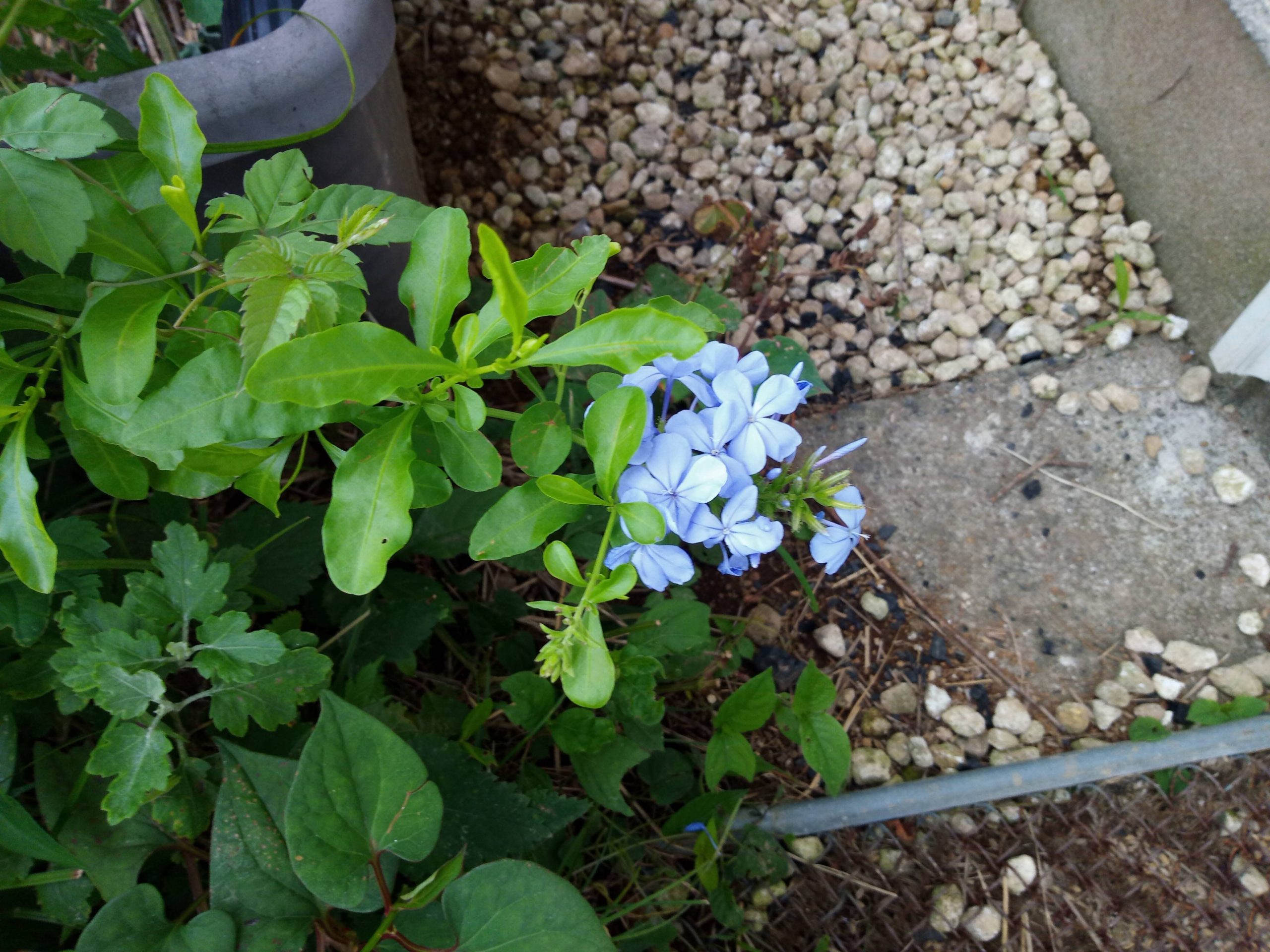ブルンバーゴが彼方此方に這い回っています。蔓性だというのが良く分かります。上手に育てたら、きっと壁一面にワイアネットでもあれば広がるんだろうな。私にはそれだけのスタミナは無いし、興味もありません。