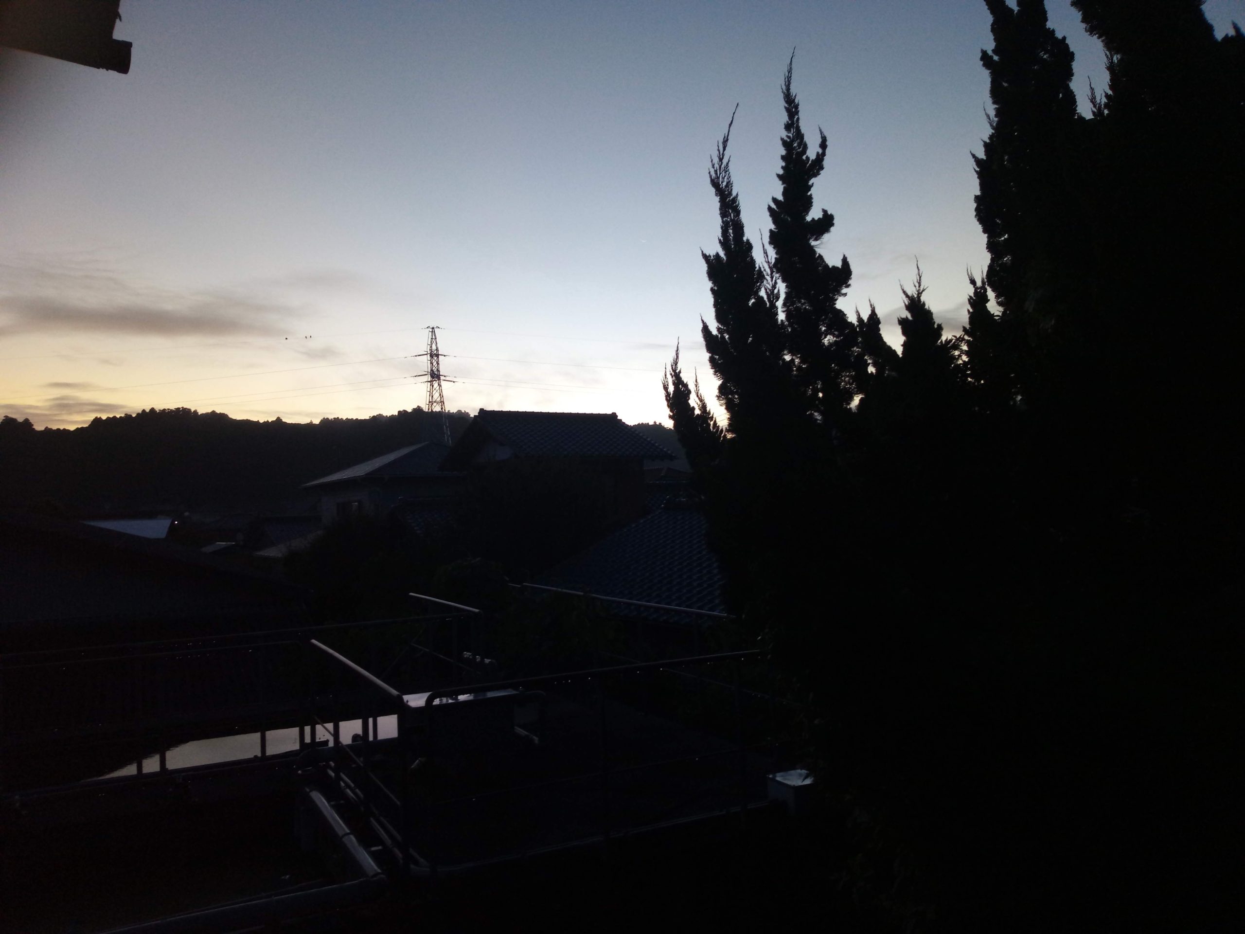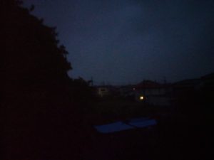 雨戸を締め切っているから、蒸し暑い。取り敢えず、東の窓を次の雨が来るまで網戸にしました。東の海上には発光現象が赤く出ていました。
