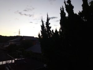 時に20mを越える様な大風が吹き荒れた一日でしたが、その風も止み、山の頂上辺りに日が沈んで行きました。いつもの何気ない風景が本当にありがたいですねぇ。