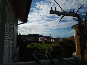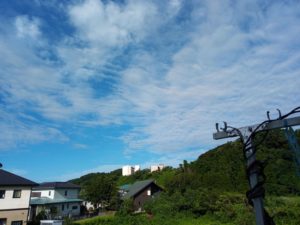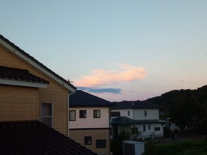 一寸気になる雲が西から東へ貫いていました。買い物から帰る時にも白かったですがありました。