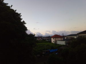 星が出ていますが、風は南西か南南西ですが、部屋に入ってくるほどには強くありません。体感的には無風で、汗を寝ている間にかきました。西南西から昨日の午前中と同じ様に雲が湧いていますね。