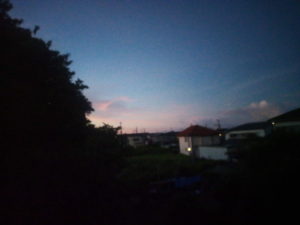 5時半、蝉が鳴き始めました。それ程、蝉にとって時間が残っていないのを分かっているかのようにアチコチで鳴いています。朝露が家々の屋根をしっとり濡らしています。