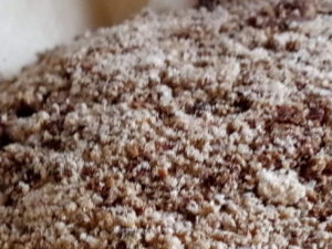 左: 島の自然農さんを見て植木鉢の受け皿…それも直径15㎝の!…で発酵をさせているボカシです。発熱して来ました。このまま置いて熱が冷めた処で梅の樹は休眠中だから、邪魔をしない様に別のものに上げて見ましょう。物干しの苗達には発酵する前のものをあげてしまったので、一週間位間を空けないと分からないですね。