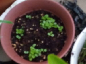 中: 極早生玉葱タイガージェットの苗です。少し太くなってきたかな?同じ鉢に生えているのは春蒔きビーツです。暑さが落ち着いて来たら、復活して来ました。
