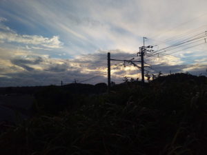 彼岸花を巡って置いて良かった。思ったよりも風は強いです。昨日の空は北は青空が出、南半分は灰色の雲に覆われ、まるで雲の品評会の様に色々な雲が現れていました。