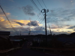 17時、廊下に入れて置いた苗達を物干しに出しました。もう強風も強雨も無いでしょう。南東の空が明るくなっていました。