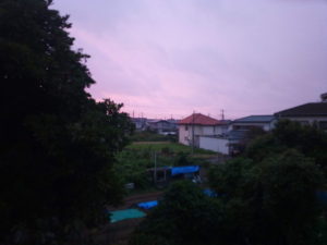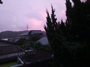 何故、台風の時って、こういう薄気味悪い色の朝焼けになるのでしょう。