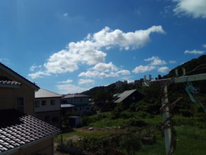 台風一過は晴れて久し振りの青空を拝めましたが、吹き返しが強く蒸し暑さも少し残っていました。