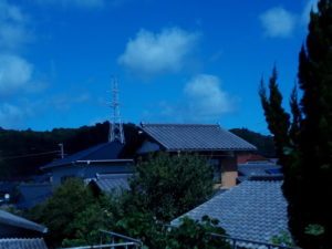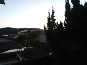 5時23分、東は日の出前のハレーション気味です。今朝の日出は5時26分、日の入りは17時39分です。