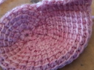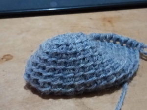 右: これは変だよね!何かがある。そして他の(あまり上手でない)人の動画も見てみよう、と考えています。日本語で検索してそこに書いてあった事を参考にしながら編んでみました。丸まる事が無くなりました。やはり、コツはあるんですね。フ~ッ!ここからがスタートラインです。
