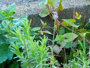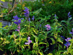 中: 台風前には白い小さな蕾だったサルビアストラータが濃い花を上げて来ました。