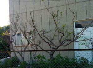 左: 西隣さんの梅の樹は南西側だけ、葉を落としました。