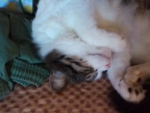 4時半に起こされました。トラ子がアン!、と鳴いて横に座っていました。相変わらず、2時半頃に目が覚め、猫員を確認。あれっ、うめも戻っている。4時半にはうめは再び出掛けてしまっていました。