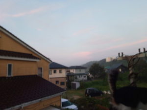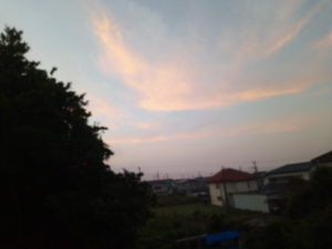 5時22分、キーボードを叩きながら西南西のピンクの雲に気付きました。肉眼ですから、本当に綺麗なピンクで迫力でした。
