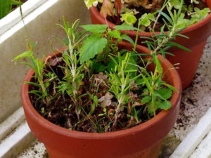 左: ローズマリーを5本追加しました。向う側が古い2本です。