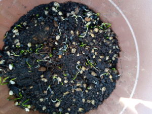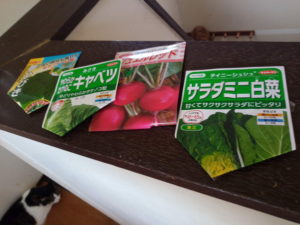 空いたトロ箱にありったけの土を入れて四種類の葉物を蒔きました。どうなるかは分からないけれど。