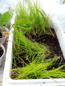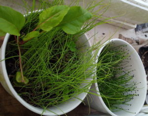右: 玉葱苗の長い方が極早生タイガージェット;短い方が中晩生のノンクーラー。