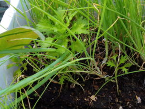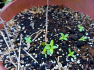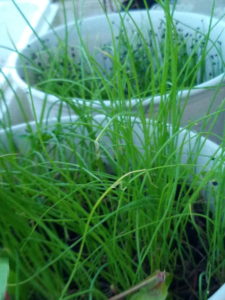 韮の育苗は初めてです。昨年は沢山町のそこいらに生えている韮から種を頂戴して庭に蒔きましたが中々上手に育てられませんでした。今年は物干しで育苗して鉢を玄関側において育てます。今年縮緬紫蘇で重宝した場所です。