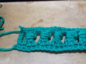 最初の練習は極太糸で、戴きものだからかなり年季が入っている。並太で編んでみました。