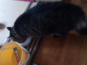 7時前、うめが帰って来てカリカリ+ちゅ~るで食事。次に帰って来たらジュレを上げましょう。