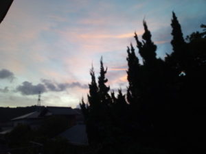 5時23分撮影でした。いつもの様に西南西の雲が茜色に染まるのを見て東の窓へ行きました。