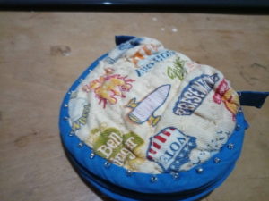 裁縫ケースを箱にして外側に補強の意味で木綿布を張って…、と考えていましたが、使い始めて少し勝手が悪い事に気付きました。化粧ポーチの様なもので平たい、最低限の膨らみのもの、但しキルティング生地でファスナ―付きで作るのがどうやら使い易そうです。