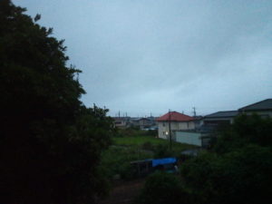 2日3時には茨城県の遥か東沖にある予測が出ています。其処からは速度を上げて進む予測です。5時30分の空は、この時は雨風もそれ程ではありませんでした。